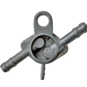 Benzinekraan voor montage tussen (benzine)slang. In- en uitgang 6mm in diameter. Oogje aan lichaam voor gemakkelijke montage.